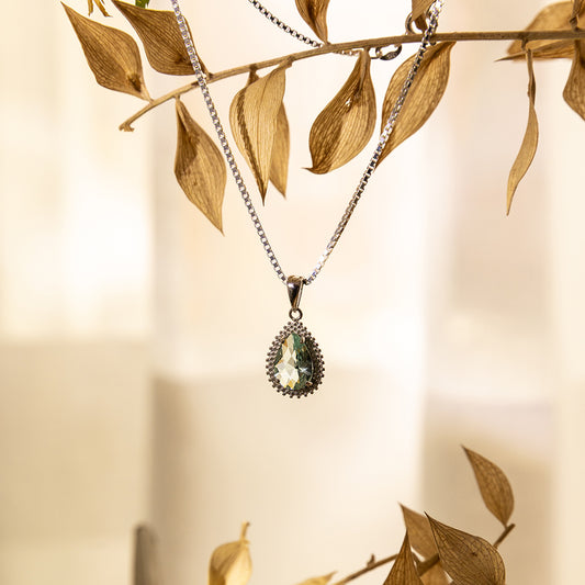 Selene 銀光水滴吊墜項鍊 - 湖水綠