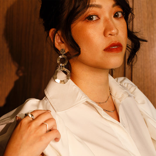 Introducing the Amber Echo collection. A series of modern jewelry in a quiet, golden hue.