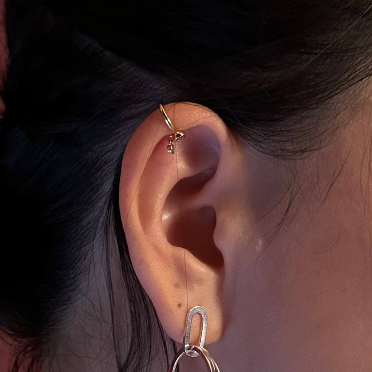 ✦ A light, mini ear cuff design featuring a delicate, tiny drop stone.