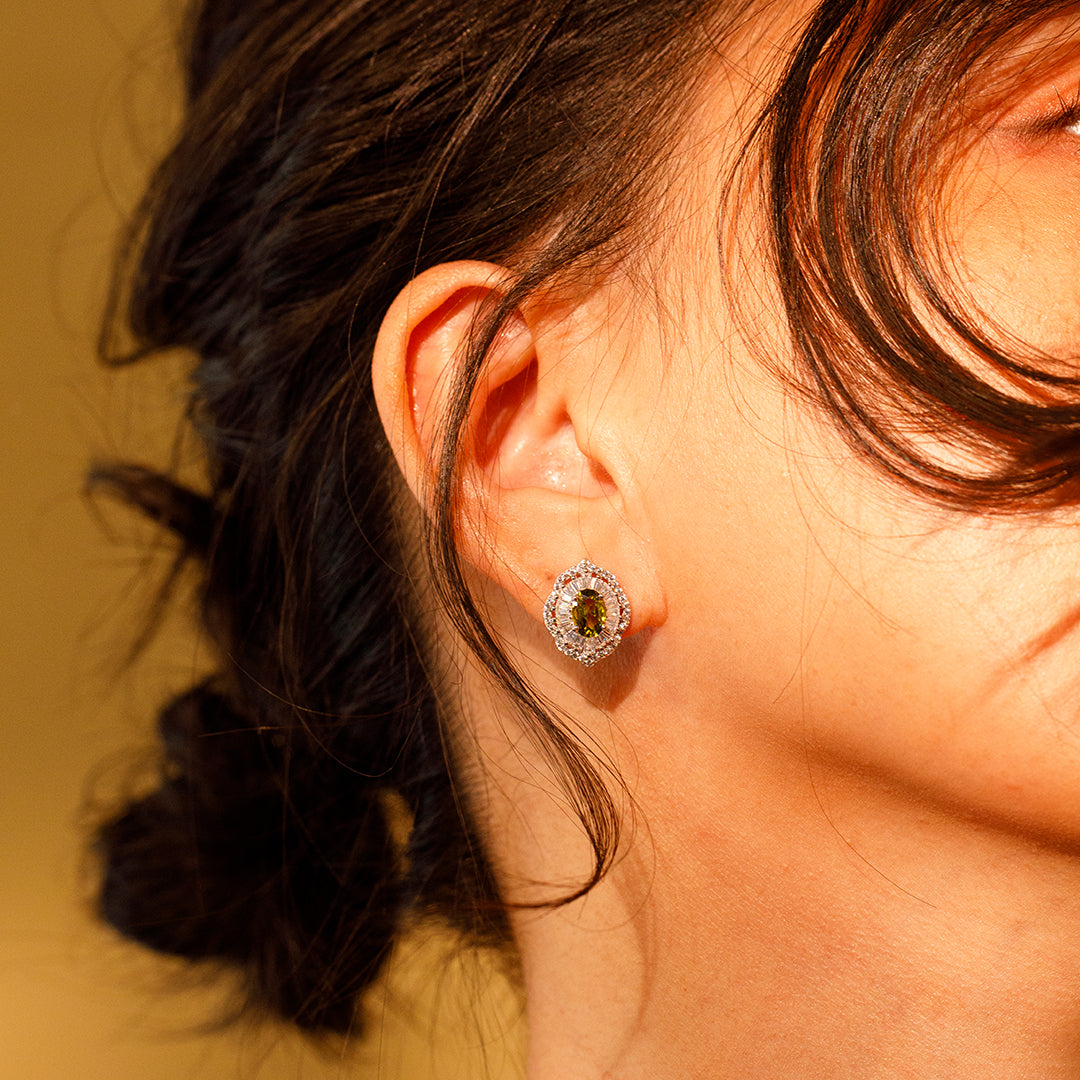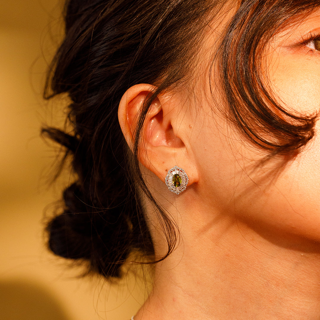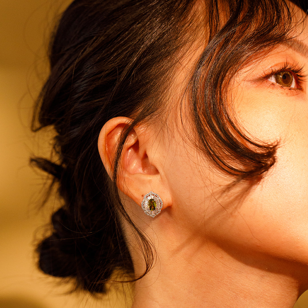 ✦ Materials:925 Sterling Silver& Olive Green Cubic Zirconia /Rhodium Plating