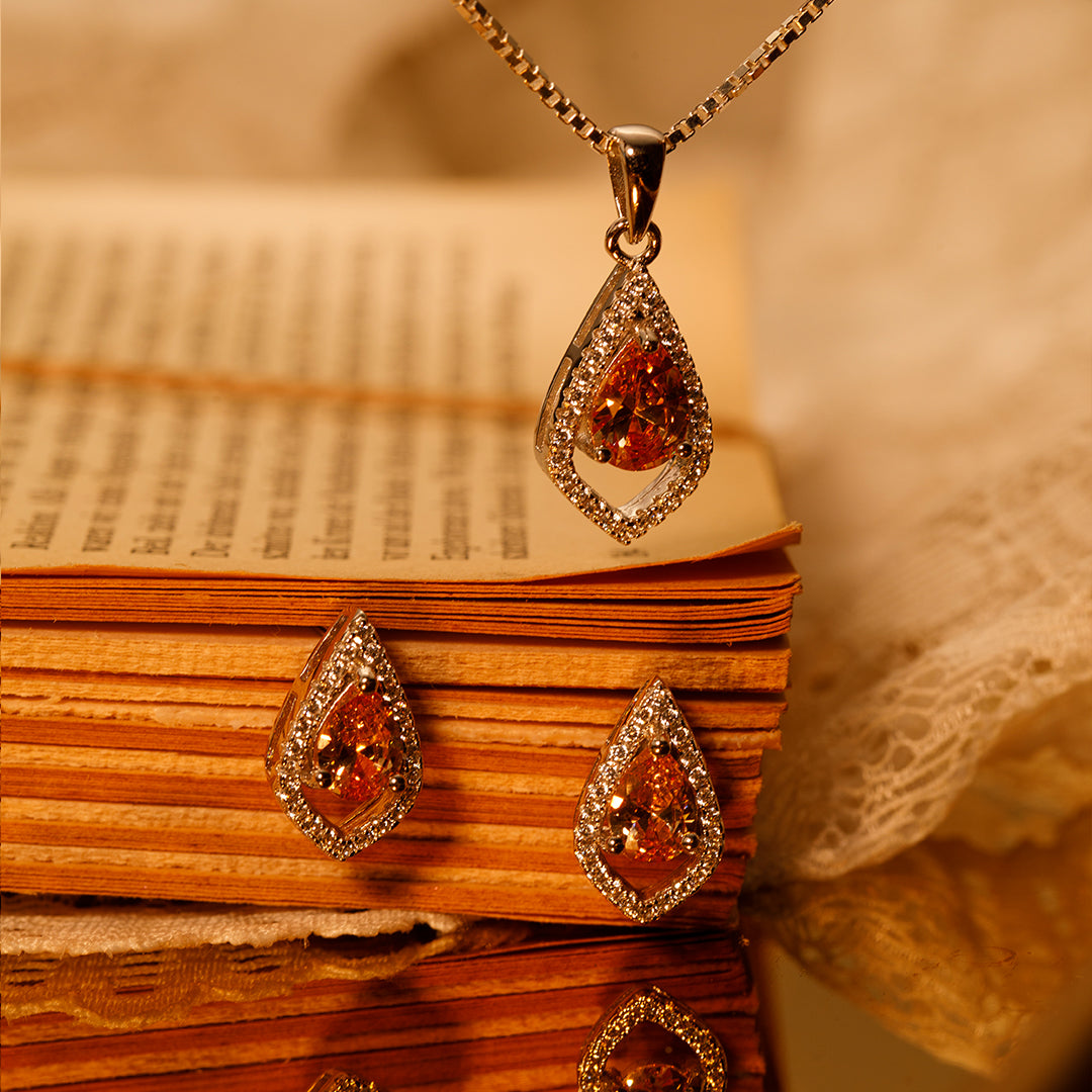 ✦ Materials:925 Sterling Silver& Champagne Gold Cubic Zirconia /Rhodium Plating