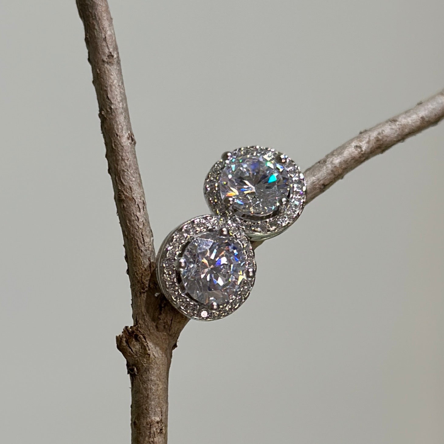 ✦ A classic halo design that instantly catches the eye, letting the single white zirconia shine with timeless brilliance.