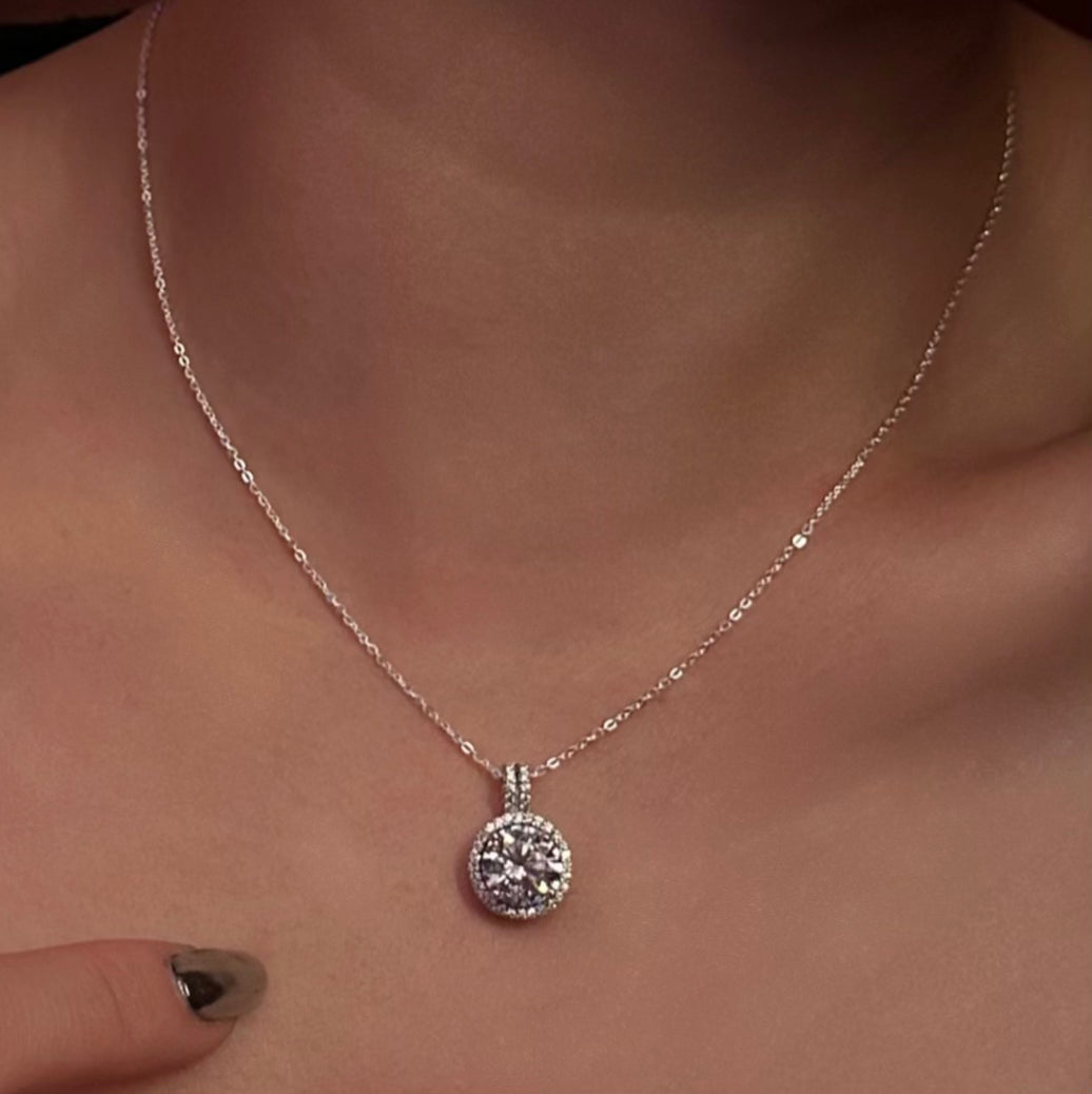 ✦ 與耳環相互輝映的經典之作,單鑽白鋯在鎖骨間閃爍,細膩勾勒優雅線條。