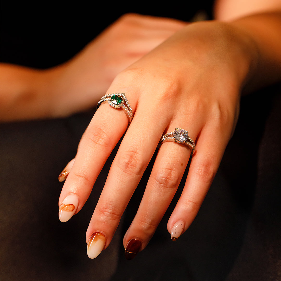 Lina 綠芯白鋯光環銀戒