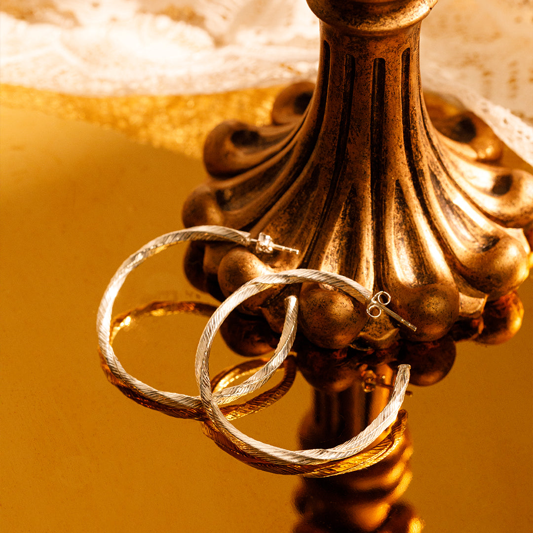 ✦ 輕盈羽紋細刻於大圈之上,如秋風拂過黃金羽翼,散發靜謐而堅韌的光感。✦