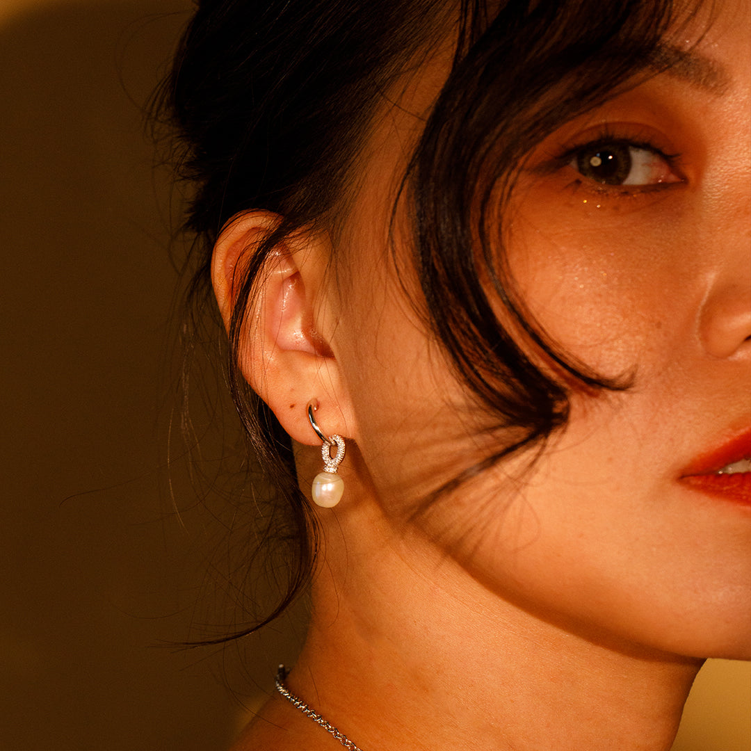 ✦ 珍珠與鋯石交錯垂墜,流光滑落間散發柔和摩登氣息,低調中藏不住優雅。✦