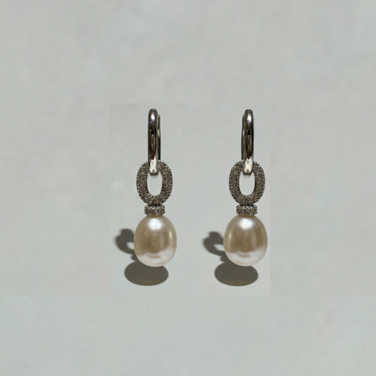 ✦ 珍珠與鋯石交錯垂墜,流光滑落間散發柔和摩登氣息,低調中藏不住優雅。