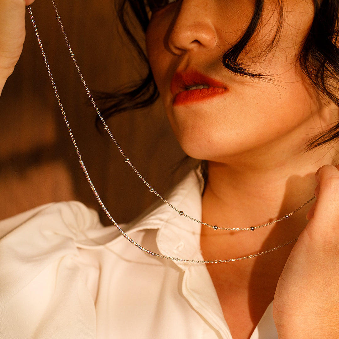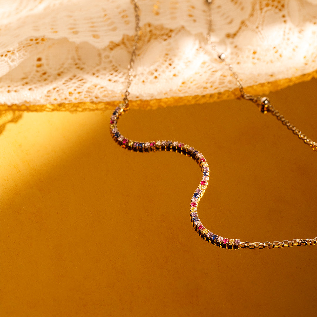 ✦ Inspired by radiant light plays—dual chains adorned with colorful zircon stones that sparkle like a lively celebration.✦